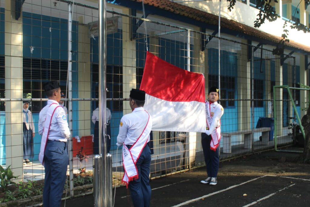 Upacara kali ini menampilkan sinergi luar biasa dari petugas gabungan OSIS, Pramuka Khusus, dan Paskibra. Bertindak sebagai Pemimpin Upacara adalah Sultan Irsyad Ihsan Fauzi (Kelas 8.2), yang memimpin barisan dengan tegas. Di barisan guru dan peserta, tampak keharmonisan yang diperkuat dengan lantunan lagu “Rukun dengan Teman” serta lagu “Hari Pertama Ke Sekolah” yang membangkitkan antusiasme belajar.