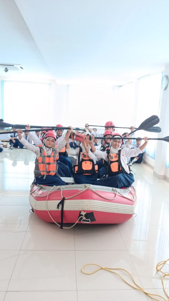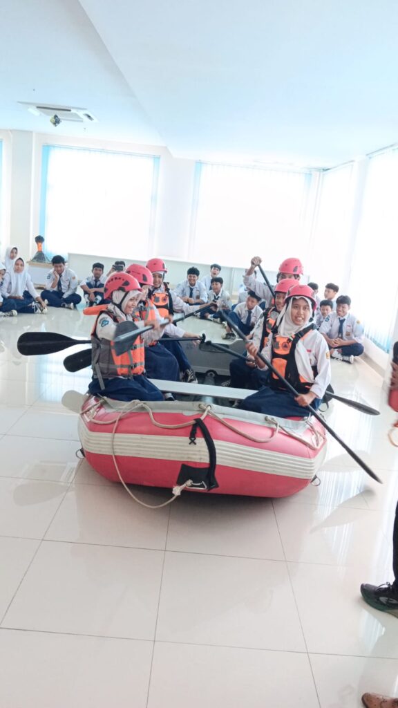 Keseruan memuncak saat simulasi langsung dimulai. Murid-murid diajarkan secara mendetail mengenai tindakan penyelamatan saat terjadi gempa bumi dan banjir. Salah satu momen paling berkesan adalah saat edukasi menolong korban banjir menggunakan perahu karet. Di sana, para murid tidak hanya melihat, tetapi mempraktikkan langsung cara mendayung dengan irama yang benar serta bagaimana memposisikan korban di atas perahu secara aman.